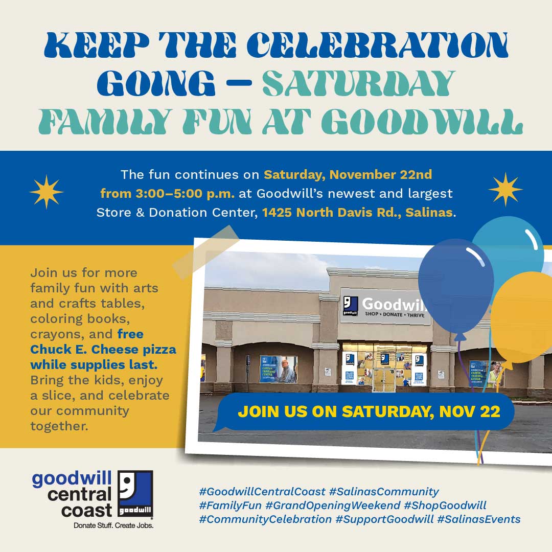 Stop by North Davis Goodwill in Salinas today and see how your support creates opportunities and transforms lives right here on the Central Coast!