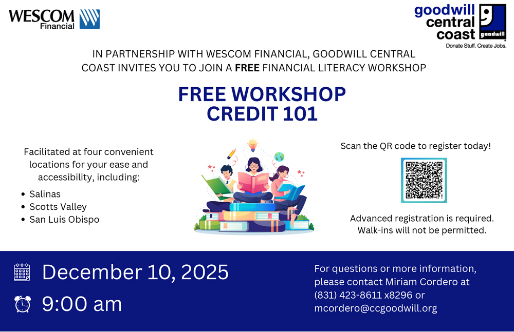 Goodwill Central Coast wants to help you get your entire tax refund by offering a free and easy way to get your hard-earned money back this upcoming tax season. In collaboration with the United Way, the IRS, and many other non-profit agencies, we are providing a free tax filing service to our employees and the community. You can prepare your taxes in our Career Centers and other locations in Santa Cruz, Monterey, and San Luis Obispo counties using these services: